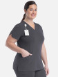 * Premium double-knit fabric with premium double-knit fabric* 2 curve front hand pockets * Dye-to-match front and re-enforced back contrast mesh yokes for breathability and comfort* Modern split sleeve design for enhanced style and movement* Front and back princess seams for shape and structure* Cross-over back hemline for elevated mobility and function* Bungee loop for ID badge* Side vents for movement* Size S body length: 26 "