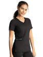 This Contemporary fit V-neck top has mesh knit at the front neckline and side panels. There are front and back princess seams, reflective back neck tape, a reflective bungee ID badge loop plus a back yoke seam. The top has a total of three pockets: two front patch pockets and one zip security pocket with a mesh pocket bag. Other features include a pencil stitch on the wearer's right pocket, reflective piping along the zipper and side vents.