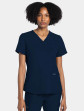 A v-neck top with shirttail hem elevates this style beyond a basic v-neck. There are a total of three pockets with reverse hem trim: a chest patch pocket and two roomy patch pockets. Decorative tonal topstitching adds the finishing touch to this scrub top. Modern Classic fit. Center back length: 26"